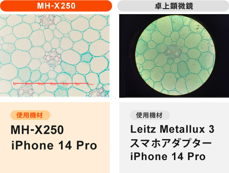 私が勤務する学校にはデジタル顕微鏡が無く、テレビ画面に顕微鏡で見た模様を写せなかったので、スマートフォンにレンズを装着して撮影ができるミクロハンターは魅力的でした。」