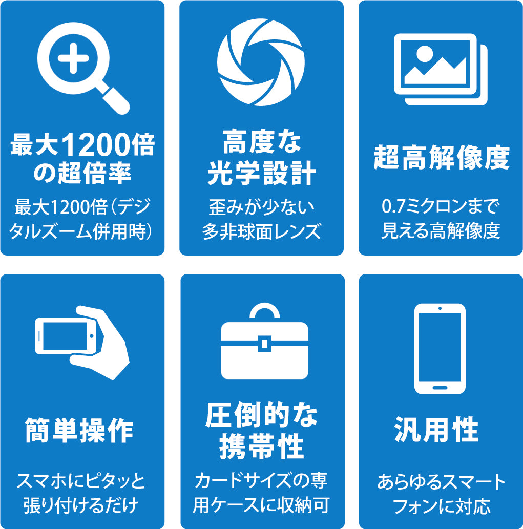 「顕微鏡レンズ」ですのでピント合わせには少しコツが必要ですが、最大で0.7マイクロメートルまで解像でき、今まで体験できなかった新たなミクロの世界を探索できます。
